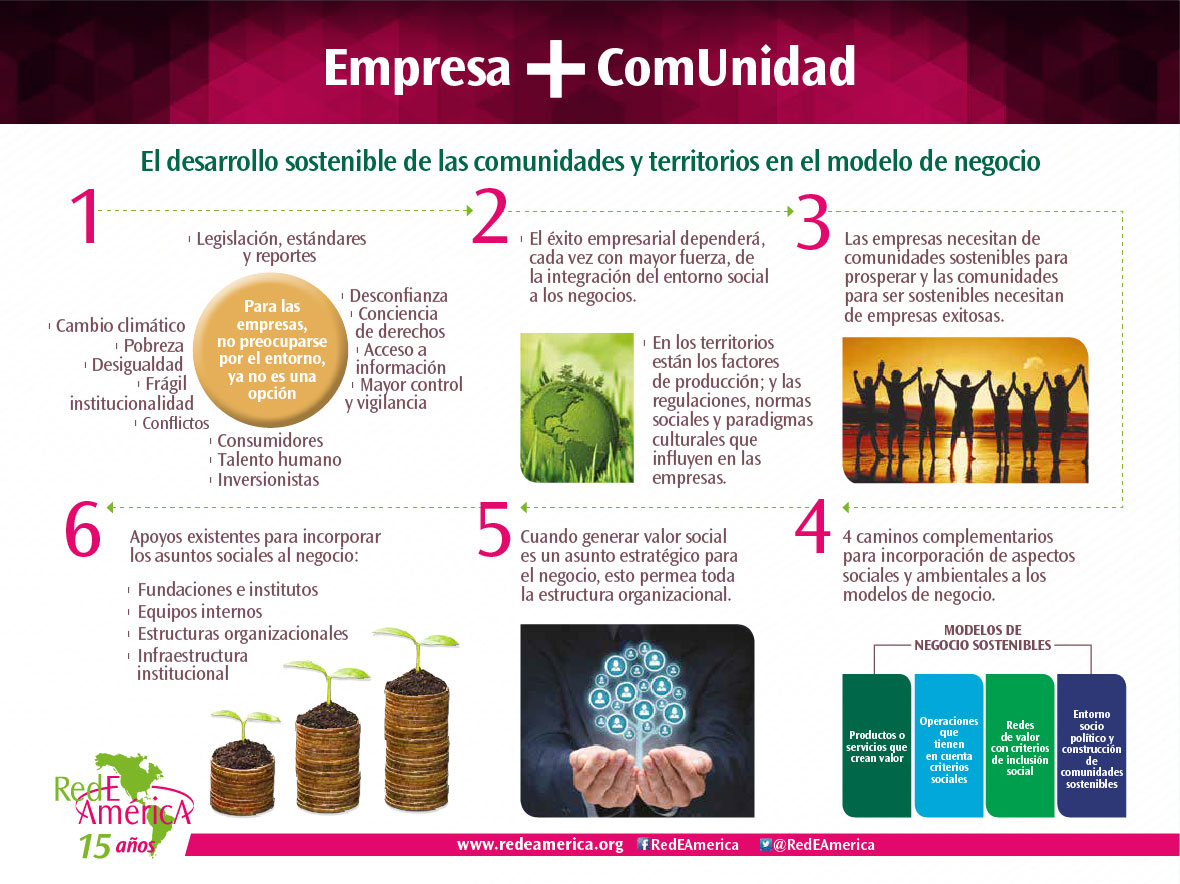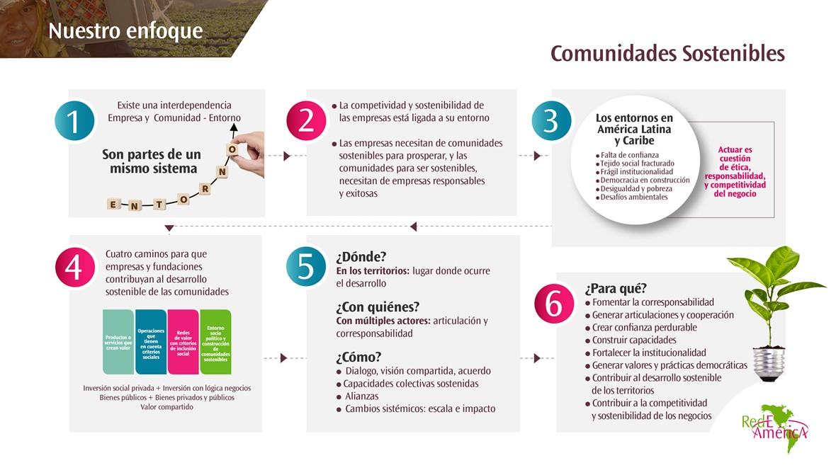 En RedEAmérica, empresas, fundaciones e institutos promueven la construcción de comunidades sostenibles, a través de la inversión social privada y desde los negocios con iniciativas que crean valor social.