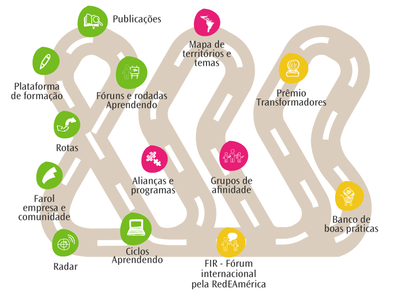 A RedEAmérica construiu coletivamente um roteiro que oferece serviços e produtos para qualificar e expandir a prática de seus membros. Sua organização pode começar a percorrê-lo a partir de qualquer ponto. É recomendado percorrer o roteiro completo para alcançar o objetivo de promover comunidades sustentáveis com enfoque de desenvolvimento de base.